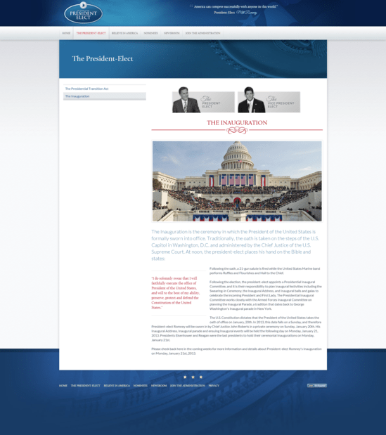Come to find out, on Election Night, Mitt Romney’s campaign released his victory/transition website. A little premature don’t you think! What a bunch of pompous assholes!