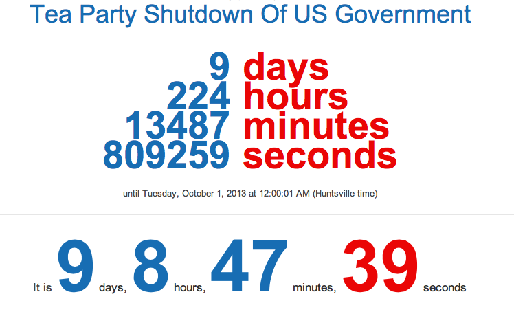 The United States Government is within 9 days of being shutdown by the extremist, Tea Party faction of the Republican controlled House of Representatives. Please visit my politics blog if you are interested in following this story.