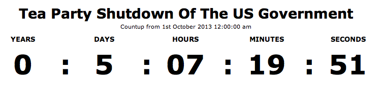 The Republican Right Wing Extremist Tea Party continues to hold the US Government hostage. Looking like this could go on a while with the House crazies looking to link raising the Debt Ceiling to Obamacare.